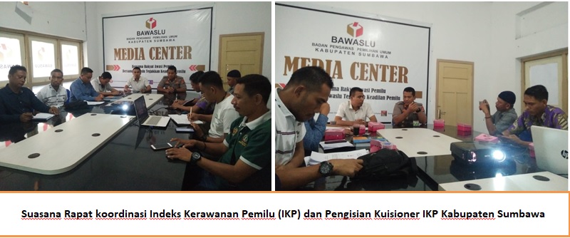 \n\n\n\nMenghadapi Pilkada 2020, Rabu, 10/12/2019 Bawaslu Kabupaten Sumbawa gelar Rapat Koordinasi penyusunan data Indeks Kerawanan Pemilu (IKP) 2020 yang dilaksanakan di Ruang Rapat Bawaslu Sumbawa. Rapat Koordinasi ini mi dihadiri oleh Kapolres Sumbawa, Ketua dan Anggota KPU Kabupaten Sumbawa, Persatuan Wartawan Indonesia (PWI) serta beberapa unsur pimpinan redaksi media cetak.