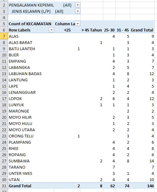 Data pendaftar berdasarkan usia\n\n\n\nDisampaikan oleh Ketua Pokja, Sekaligus koordinator Divisi Organisasi dan SDM Bawaslu Kabupaten Sumbawa, Lukman Hakim SP, M.Si bahwa besok adalah hari terakhir pendaftaran, kami akan menerima pendaftaran sampai pukul 23.59 wita. dan jika ada kecamatan yang belum memenuhi quota, maka akan diadakan perpanjangan. Jadi bagi masyarakat yang belum mendaftar, kami himbau untuk mendaftar besok, karena besok adalah ghari terakhir, tegas Pimpinan Bawaslu ini!. By. Humas