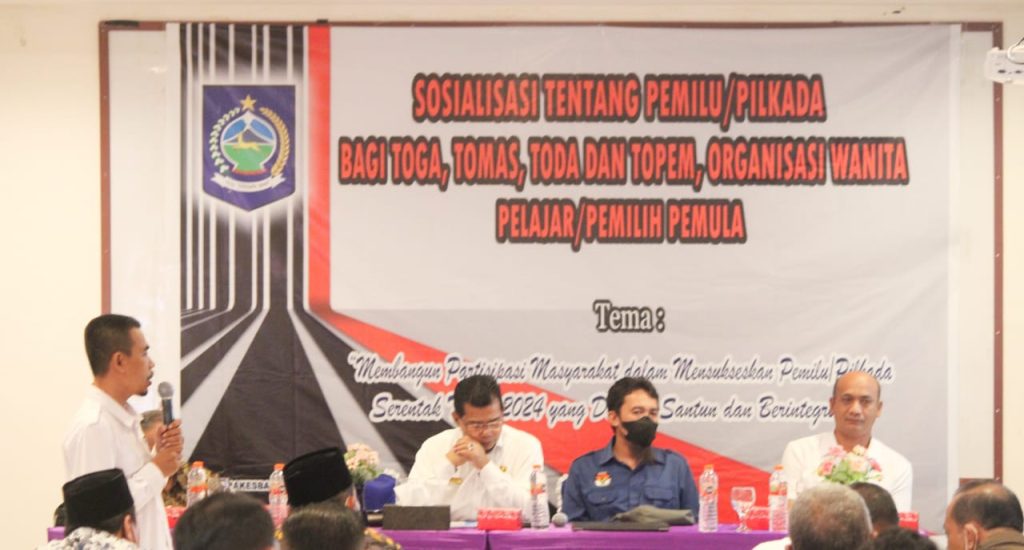 Dalam rangka meningkatkan pemahaman dan partisipasi masyarakat dalam pelaksanaan Pemilu/Pilkada tahun 2024 Kesbangpol Kabupaten Sumbawa melalui Bidang Pengembangan Politik dan Fasilitasi Orpol/Ormas melaksanakan sosialisasi Pemilu/Pilkada yang di laksanakan di aula Grand Hotel Sumbawa dengan tema Membangun Partisipasi Masyarakat dalam Mensukseskan Pemilu/Pilkada Serentak Tahun 2024 yang Damai, Santun dan Berintegritas.
