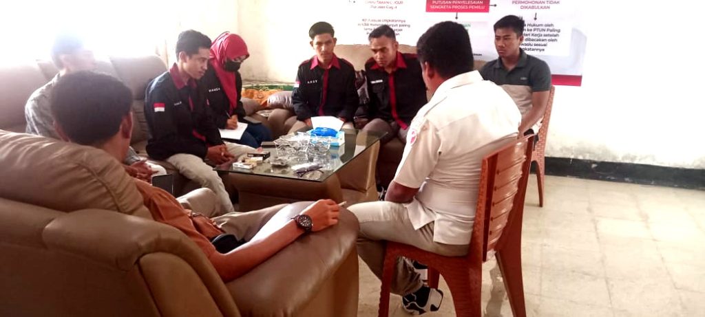 \nKordiv Hukum dan Penyelesaian Sengketa Abdul Malik, sebelah kanan Agus Ariyanto dan Mahasiswa Hukum (Unsa) menggunakan Pakaian PDH dan dan pakaian bebas. \n\n\n\nMahasiswa Fakultas Hukum Universitas Samawa (UNSA) Melakukan kunjungan ke kantor Bawaslu Kabupaten Sumbawa dan di terima di ruang kerja kordiv Hukum dan Penyelesaian Sengketa, kunjungan ini bertujuan untuk melakukan wawancara terhadap apa yang menjadi tugas dan wewenang bawaslu.